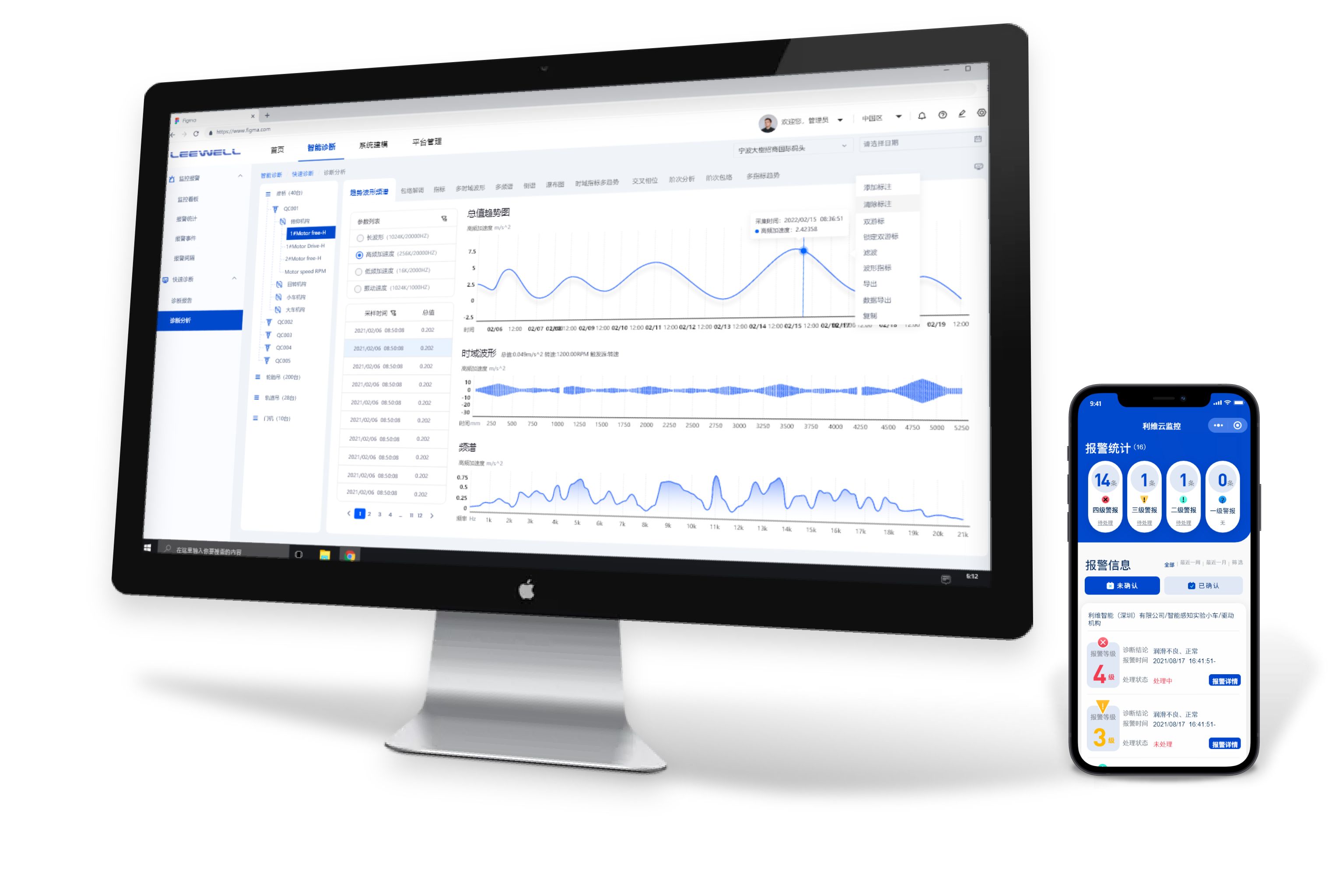 Order tracking analysis, which can cope with variable rotation speed and load tracking analysis of equipment. Acceleration envelope processing technology, early detection of early failure of bearings and gears. Built-in domestic and foreign over 40,000 kinds of bearing database, automatic identification and diagnosis of bearing failure.