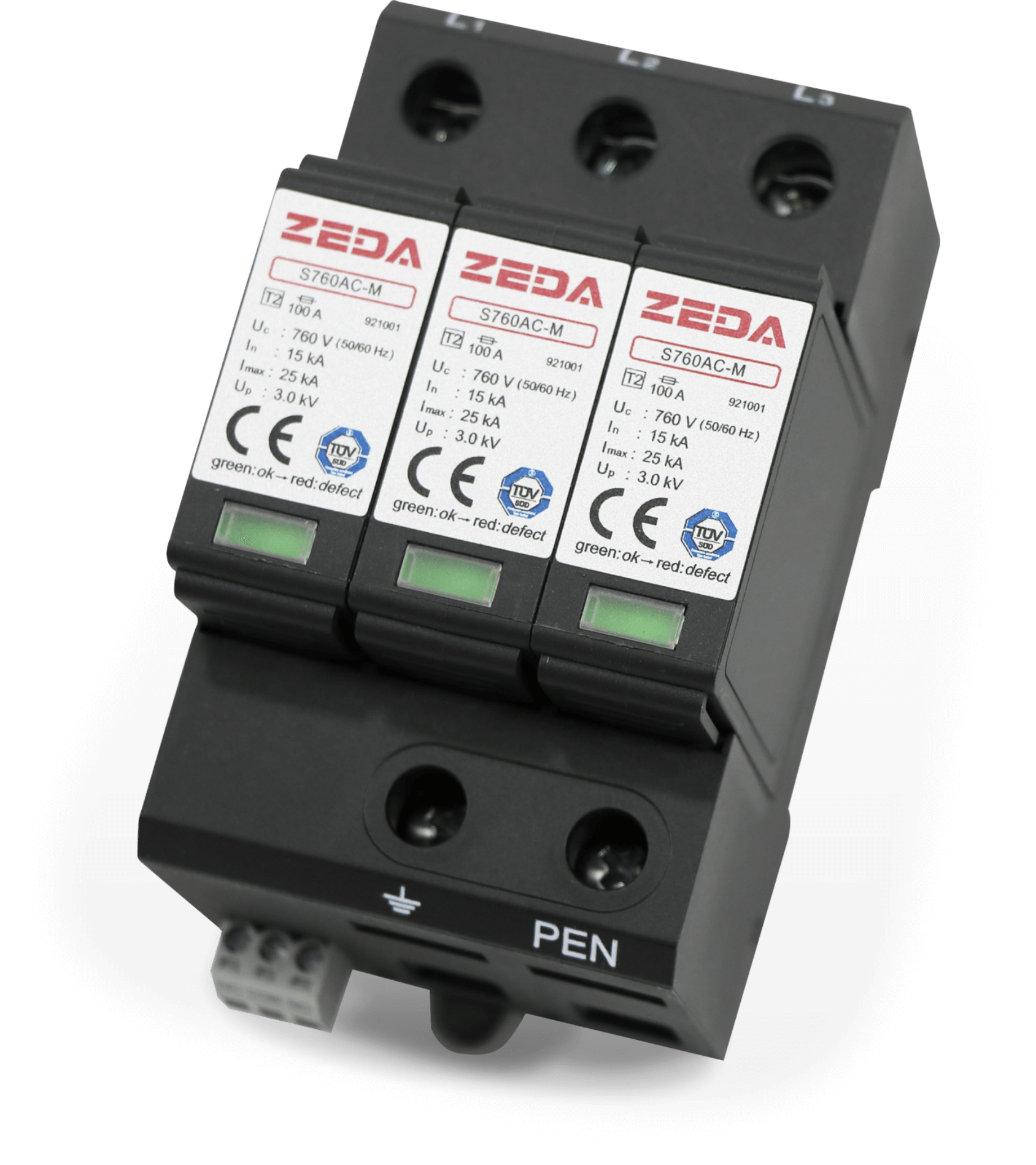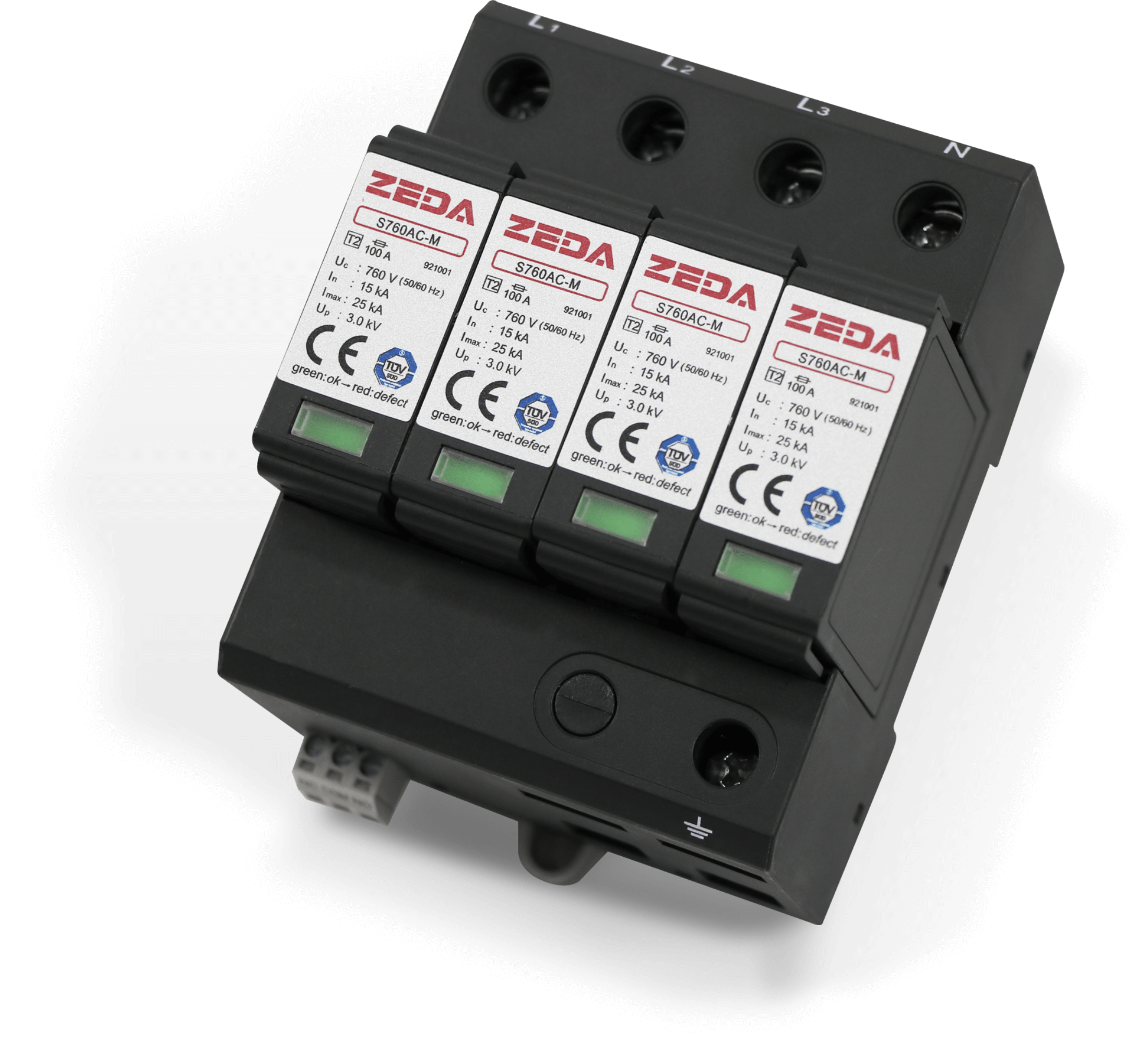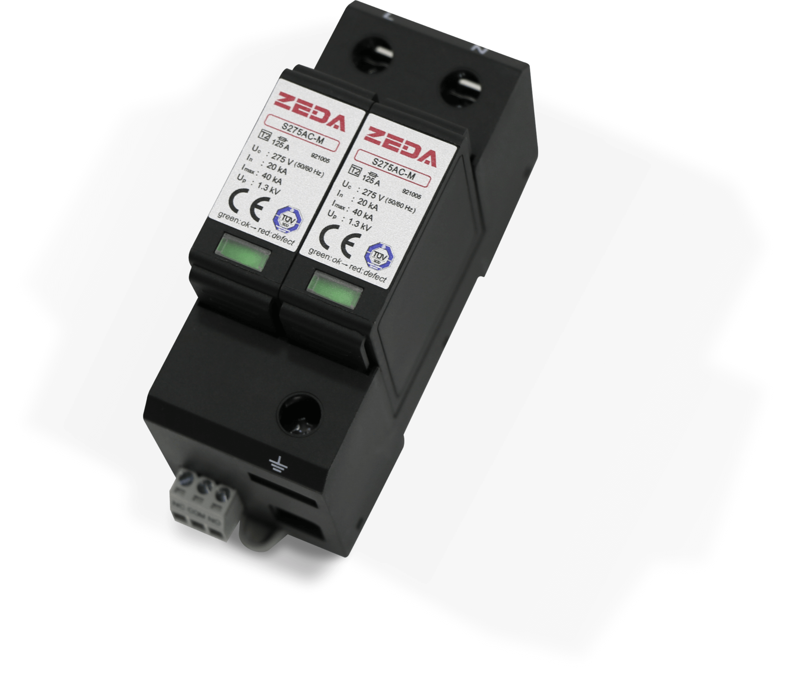 自身防雷能力(8/20us)100KA,自帶電源指示燈